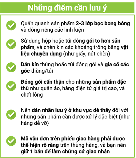 Trước khi giao hàng, bạn cần tuân thủ các những bước đóng hàng sau: